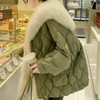 Derfor bør 'Marjorie - Oversized Duck Down Puffer Jacket med grønn pelskrage for damer' være i klesskapet ditt: