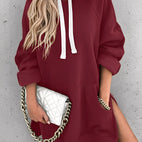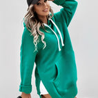 Denne hettegenseren i oversize kombinerer avslappet stil med høy komfort. Det myke, varme materialet gir en behagelig følelse, mens den avslappede passformen gir maksimal bevegelsesfrihet. Hette gir designet en sporty-moderne touch og gjør hettegenseren ideell for hverdag, fritid eller koselige stunder hjemme. Enten til jeans, leggings eller joggebukser – dette allsidige plagget passer alltid.