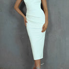Gjør et statement med denne fantastiske stroppeløse midi-festkjolen. Bestill nå for å oppleve den perfekte blandingen av stil og raffinement!