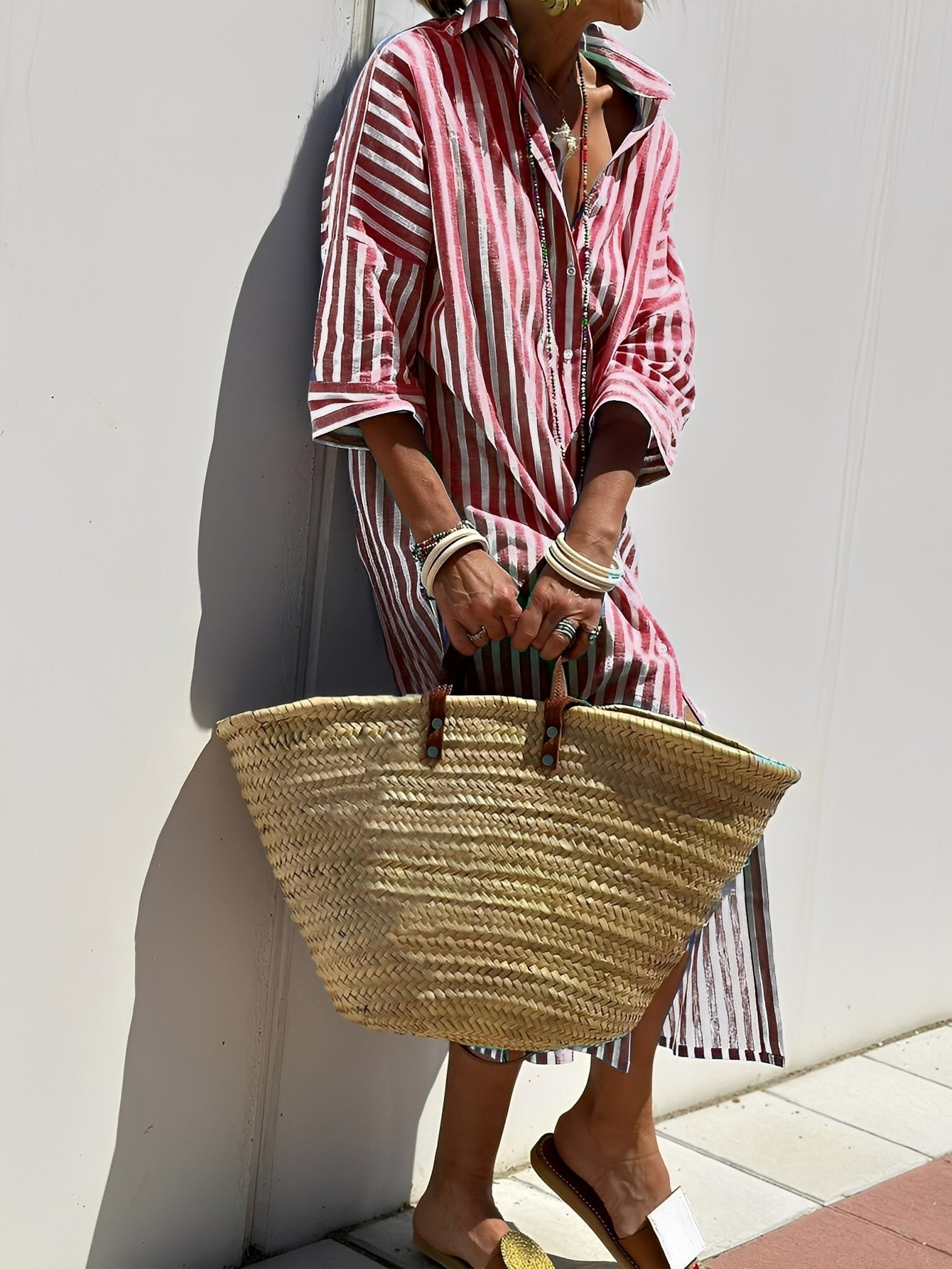 Merilyn - Komfortabel stripete skjortekjole for kvinner