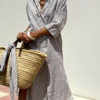 Merilyn skjortekjole i ren bomull gir luftig komfort og et klassisk stripemønster. Det lette stoffet er perfekt for varme sommerdager, mens den løse passformen gir fri bevegelse og godmen komfort. Med sin tradisjonelle skjortekrage og sommerlige farger, passer den for både avslappede utflukter og elegante hverdagsantrekk.