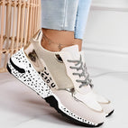 Penelope damesneakers kombinerer stilig design med behagelig komfort. Laget av lette, pustende materialer, gir de optimal bevegelsesfrihet og en behagelig følelse for føttene. Den robuste sålen gir sikkert grep, mens det moderne designet gjør sneakersene til en allsidig følgesvenn for hverdagen, fritiden eller byantrekk. En sko som perfekt forener komfort og stil.