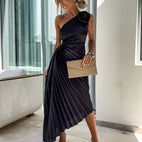 Kjolen Rachael bringer feminin raffinement til enhver anledning. Med sitt flytende stoff og de delikate plisseefoldene omfavner den forsiktig figuren, mens de kunstnerisk utformede skulderdetaljene med floral aksent gir et romantisk preg. Den smigrende snittet gir en elegant silhuett – ideell for festlige anledninger, middagstider eller spesielle øyeblikk der du ønsker å skinne med stil.