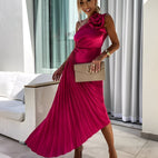 Rachael - Elegant Plissekjole med floral skulderområde for damer