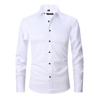Ronan business-skjorten skiller seg ut med sin kvalitetsutførelse og moderne design. Takket være det stretch-materialet tilpasser den seg perfekt, gir frihet til å bevege seg og gir komfort hele dagen. Det rynkefrie stoffet gjør at du alltid ser velkledd og raffinert ut – enten på jobb, i møter eller ved festlige anledninger.