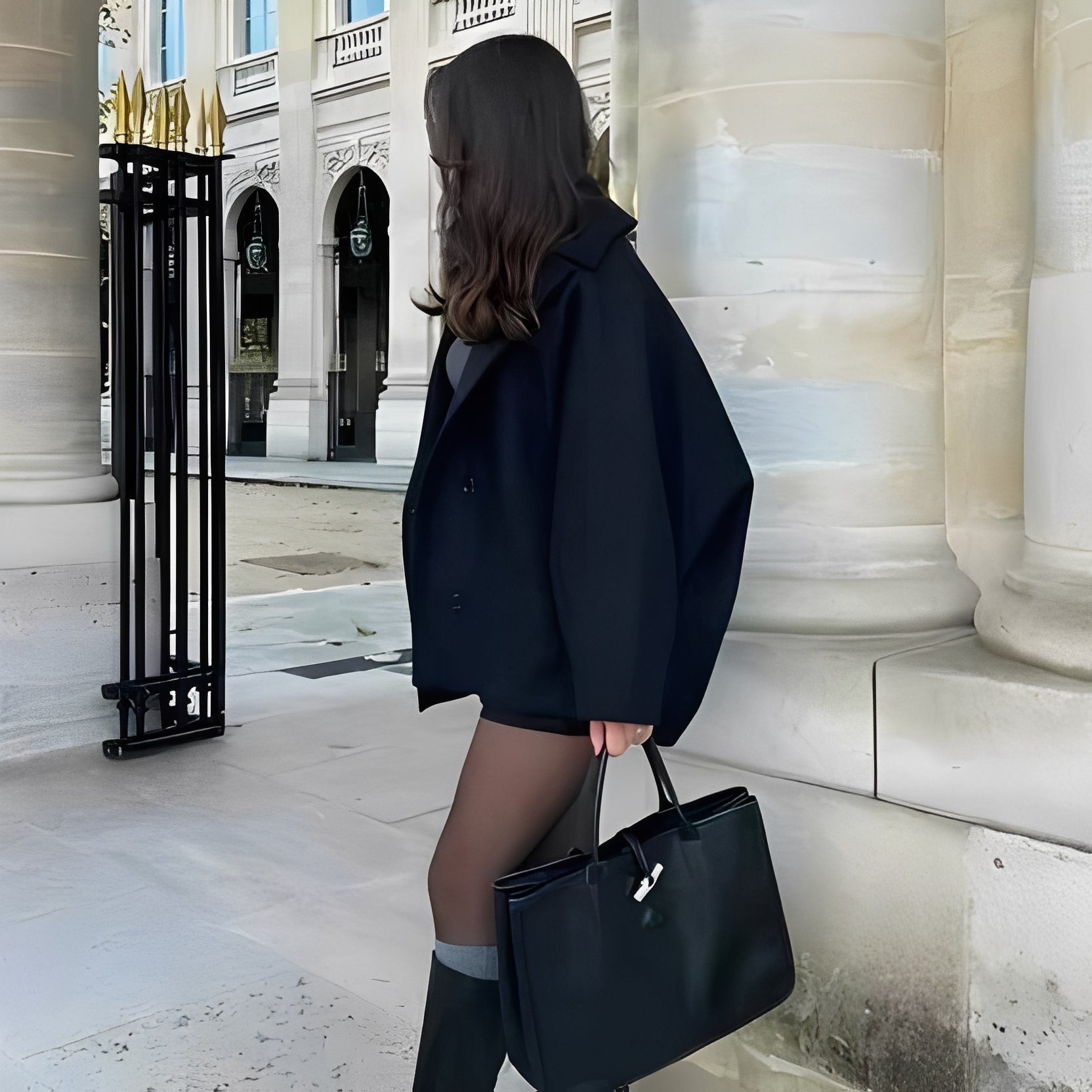 Elena – Oversize Ullblandet Dobbeltspent Kåpe