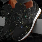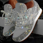 "Ross" presenterer de Glitrende Muffin-sneakers, en kombinasjon av avslappet komfort og moderne glamour. De nøye utformede sneakersene har en glitrende overflate som fanger og reflekterer lys, noe som skaper en blendende effekt. Det lekne og stilige designet gjør dem til et iøynefallende stykke for uformelle utflukter.