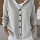 ‘Ryanne’ strikkejakke kombinerer myk komfort med et avslappet, moderne design. Hetten gir ekstra varme og en uformell look, mens den løse passformen gir mye bevegelsesfrihet. Perfekt for fritid, hverdag eller koselige stunder hjemme – denne cardiganen blir raskt en favoritt.