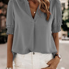 Sophia – Bluse med V-hals og Korte Ermer