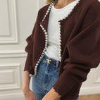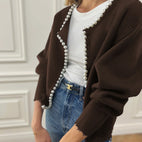 Vivien – Strikkjakke med perlepynt og franseslutt