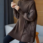 Vonda høyhalset genser er et koselig plagg for de kaldere dagene. Den løse passformen gir deg frihet til å bevege deg, mens fargeblokk-designet i sjokoladefarger gir et moderne uttrykk. Det myke strikket holder deg varmt og komfortabelt, og gjør genseren perfekt for høst og vinter. Bruk den med jeans eller skjørt for en avslappet, men stilfull stil.