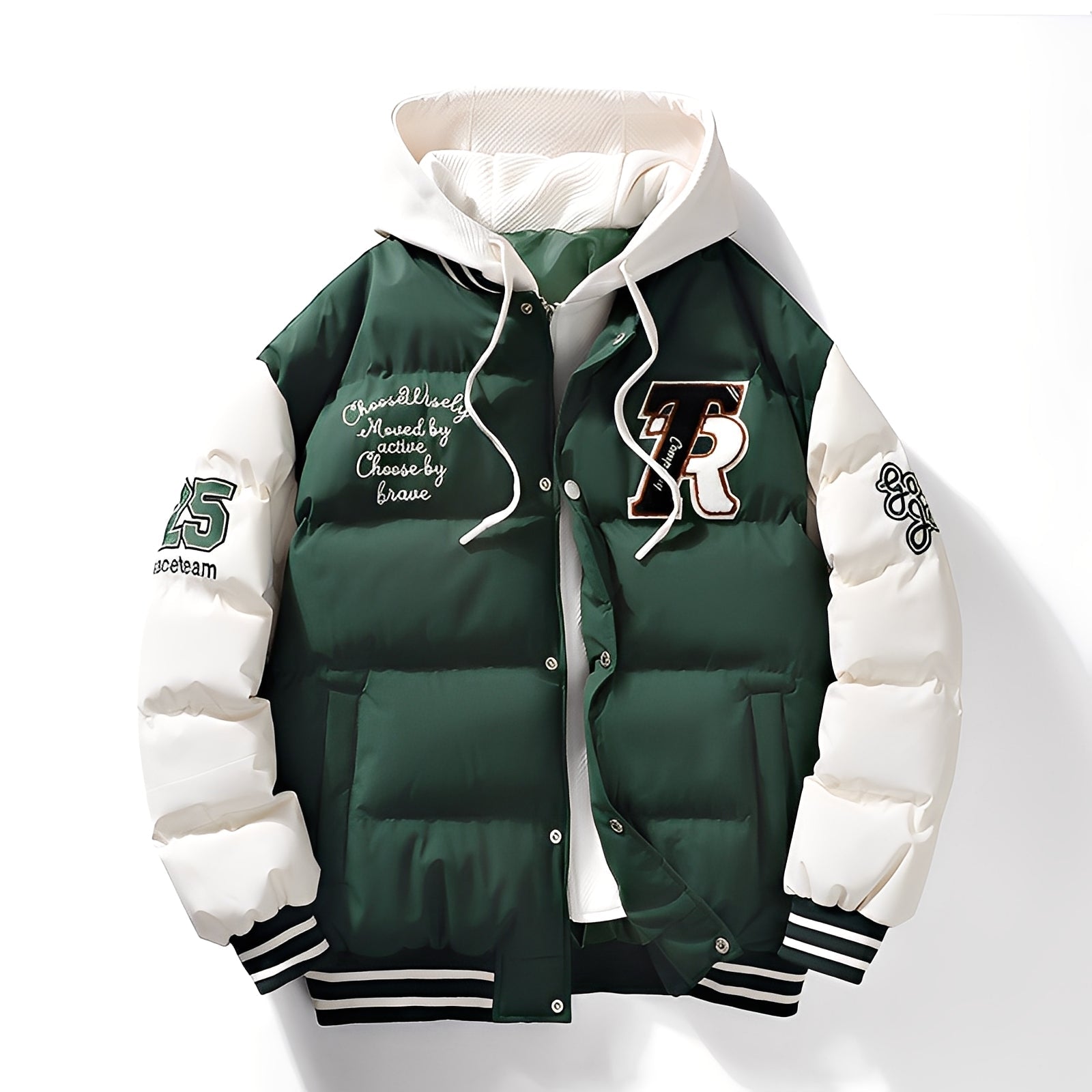 Oppdag Xander vinterjakke, den ultimate kombinasjonen av varme, holdbarhet og moderne stil. Designet for menn som ønsker å holde seg komfortable og stilige i de kalde månedene, har denne jakken en komfortabel hette og isolerende fôr for å beskytte deg mot vind og lave temperaturer. Dens elegante vinterdesign passer lett med uformelle eller streetwear-antrekk, noe som gjør den perfekt for daglig bruk eller utendørseventyr. Lett, men robust, Xander-jakken garanterer fleksibilitet og varig komfort gjennom hele sesongen.