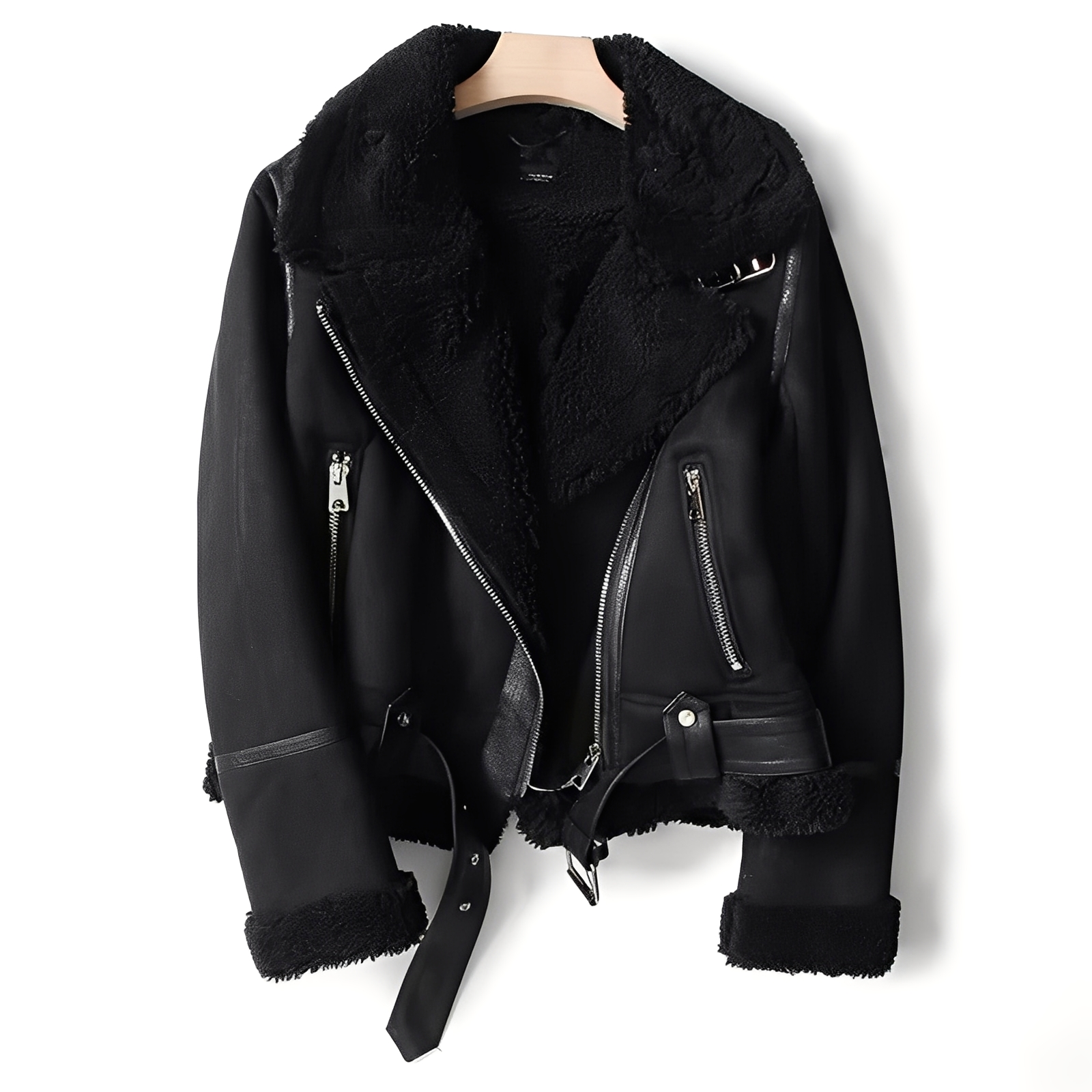 Yasmine - Varm bikerjakke i lammeskinn for damer